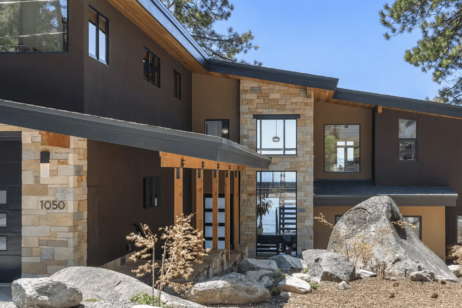Introducing a rare gem of modern lakefront living in Nevada's prestigious Skyland neighborhood. This newly constructed masterpiece is the epitome of luxury, offering an array of exceptional amenities that set it apart. Nestled against the mesmerizing turquoise waters of Lake Tahoe, this opulent retreat boasts a buoy, sandy beach, and a brand-new shared 246-foot deep-water pier with a boat lift, electric catwalk, and lights; it is a true waterfront paradise. Completed in 2021, this architectural marvel spans 4,690 square feet and encompasses six beds and five-and-a-half baths, showcasing meticulous design and the finest materials.